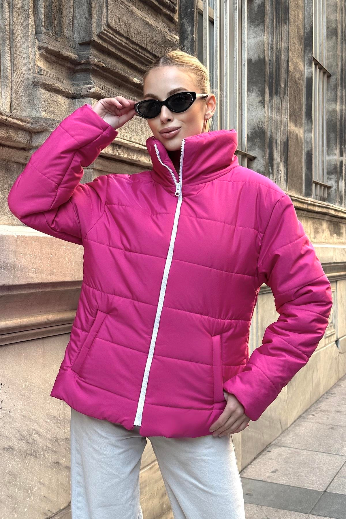 سترة منتفخة بتصميم مقاوم للماء وياقة واقفة باللون الفوشيا