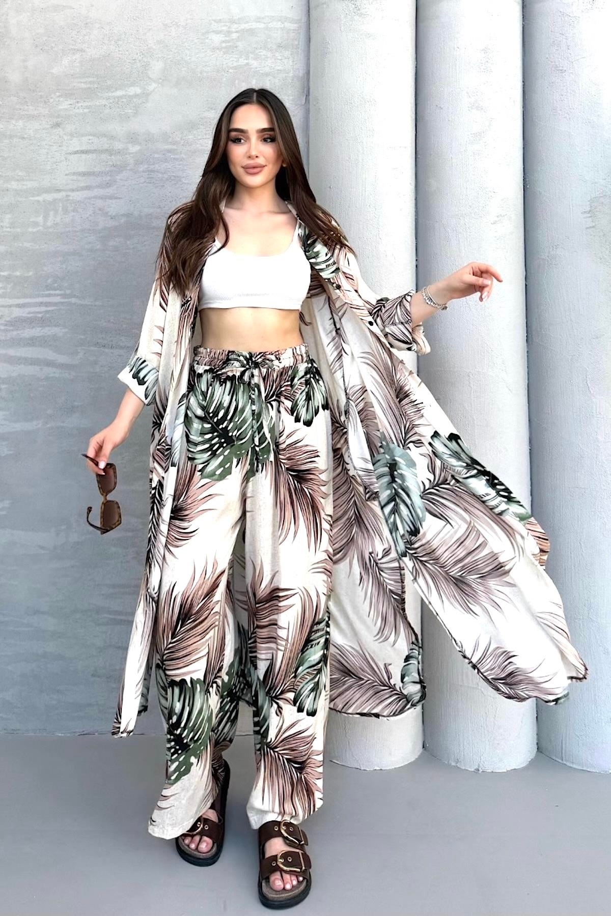 Haki Desenli Cepli Beli Lastikli Gömlek Pantolon Kaftan Takım