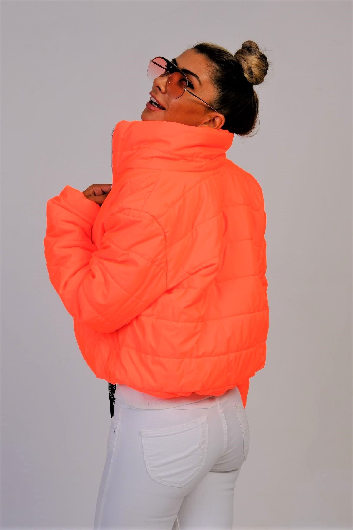 سترة قصيرة منتفخة مقاومة للماء بياقة واقفة وزهرة الرمان