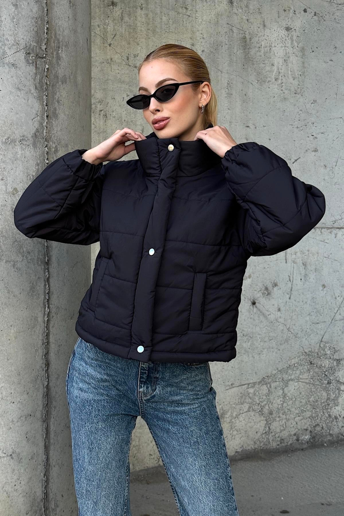 ياقة واقفة باللون الأسود، ومعطف قصير منتفخ بسحاب وإطباق