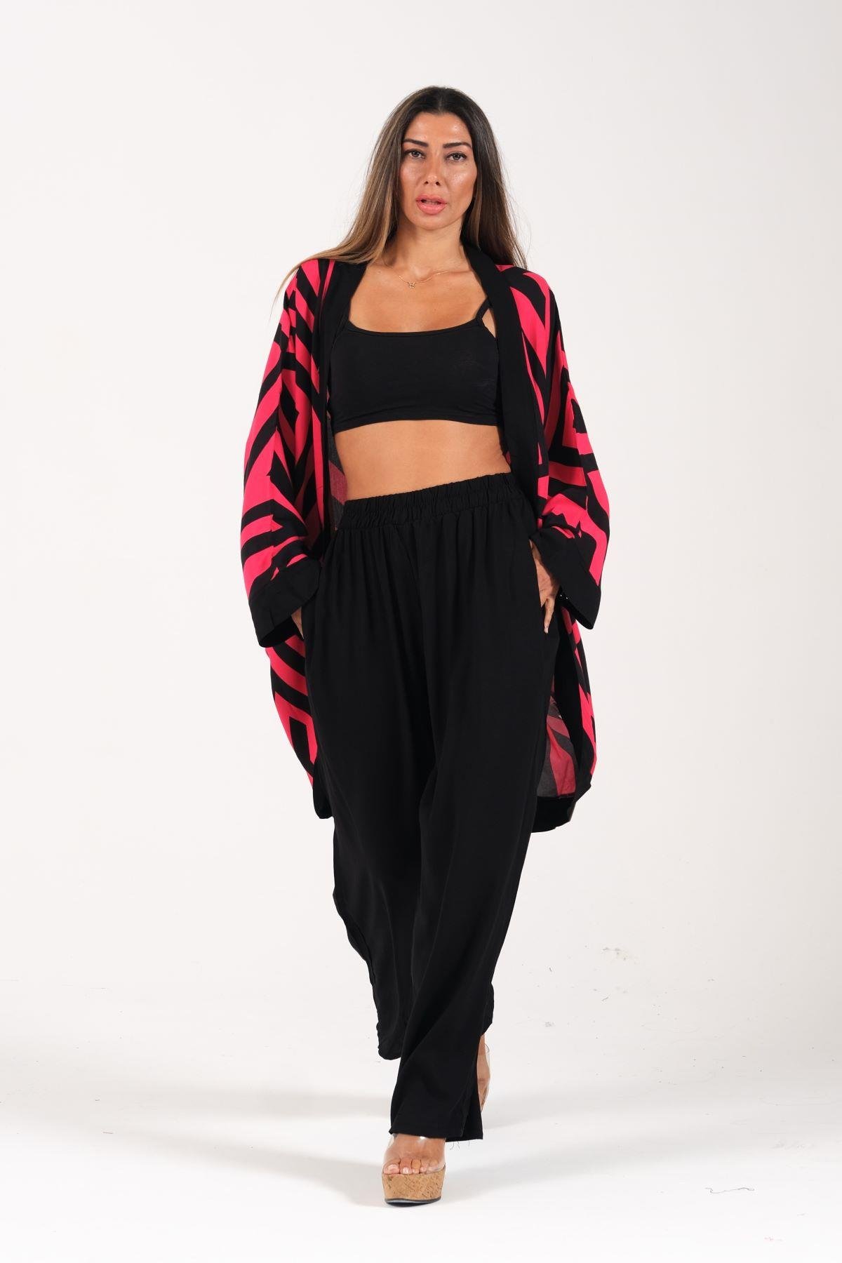 Fuşya Siyah Desenli Cepli Gömlek Pantolon İkili Takım