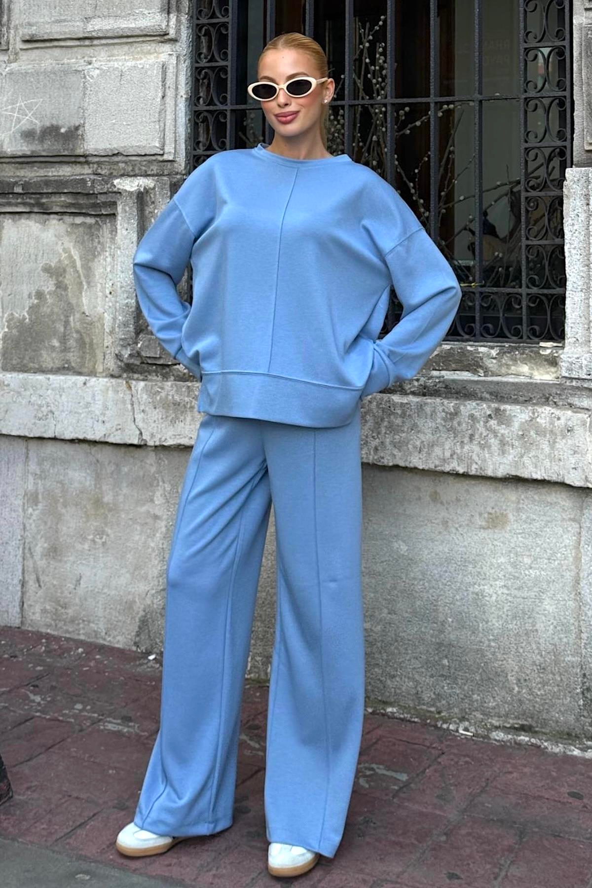 Mavi Bisiklet Yaka Beli Lastikli Bol Paça Oysho Kumaş İkili Takım (TKWOBMSSV216)