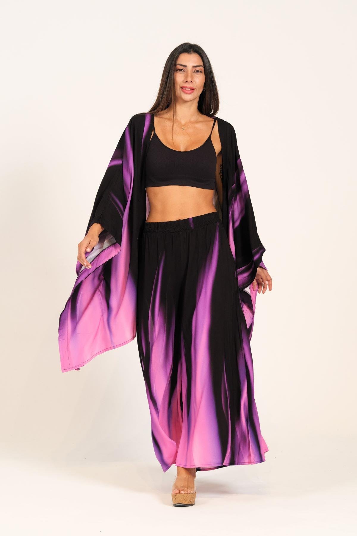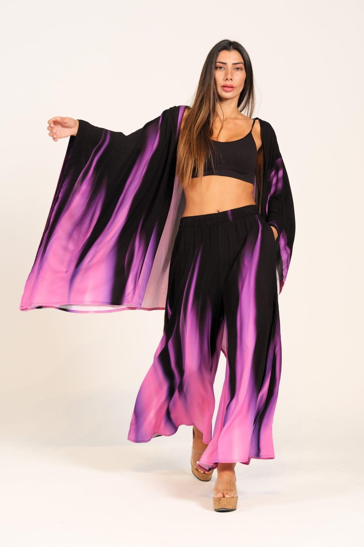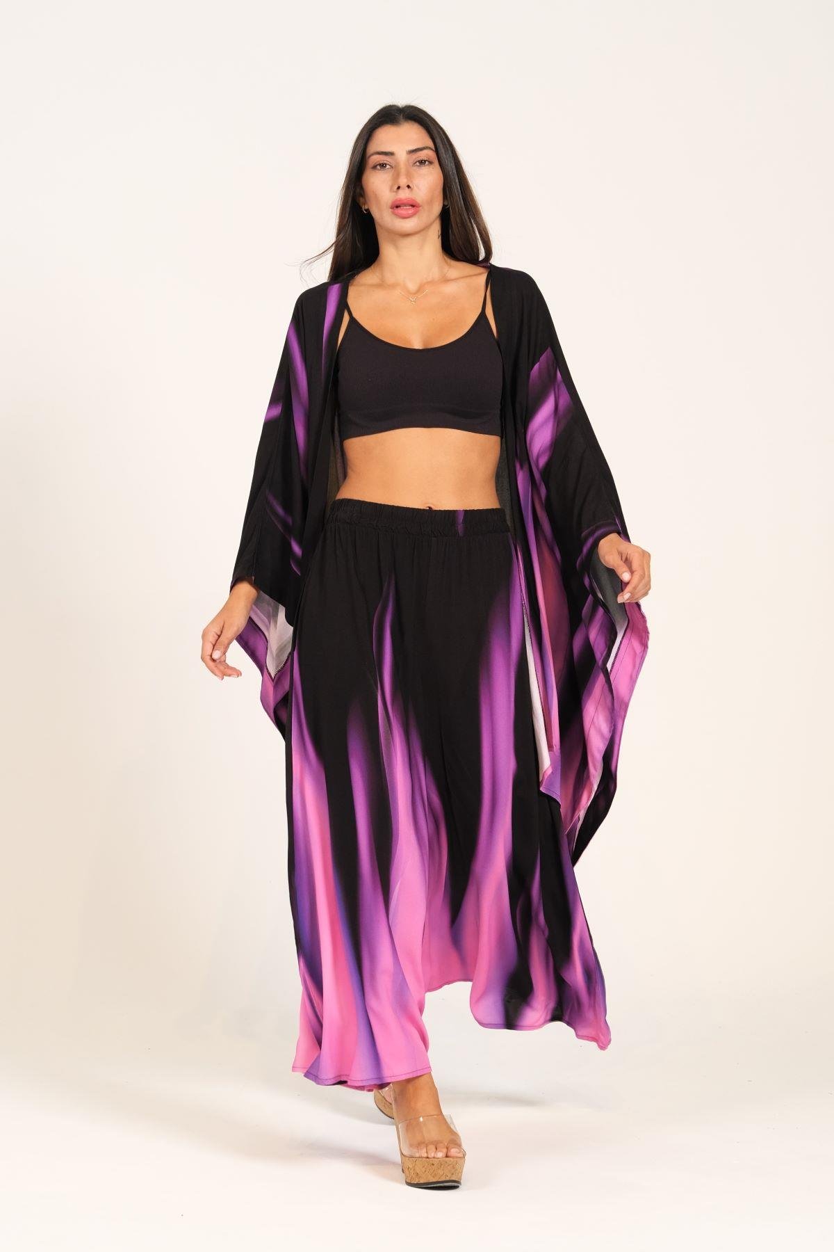Mor Alev Desenli Tunik Pantolon İkili Takım
