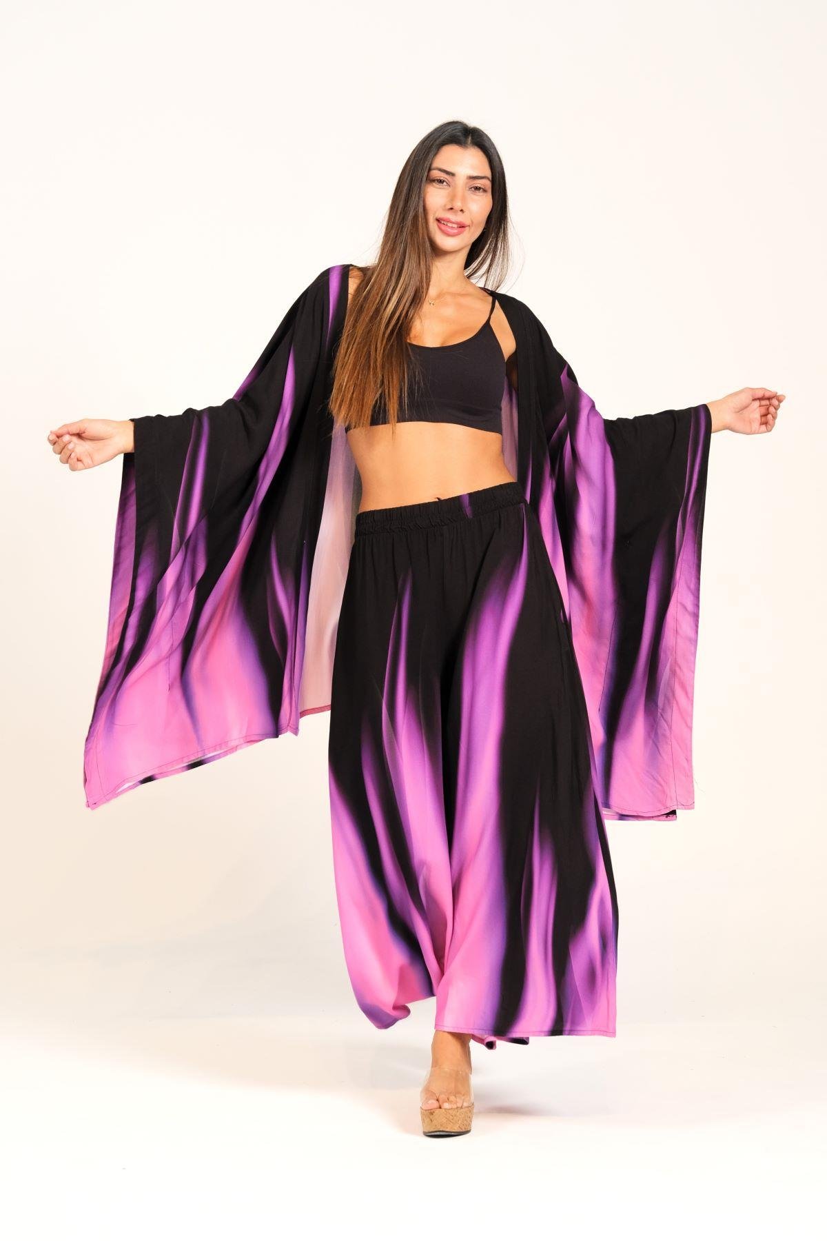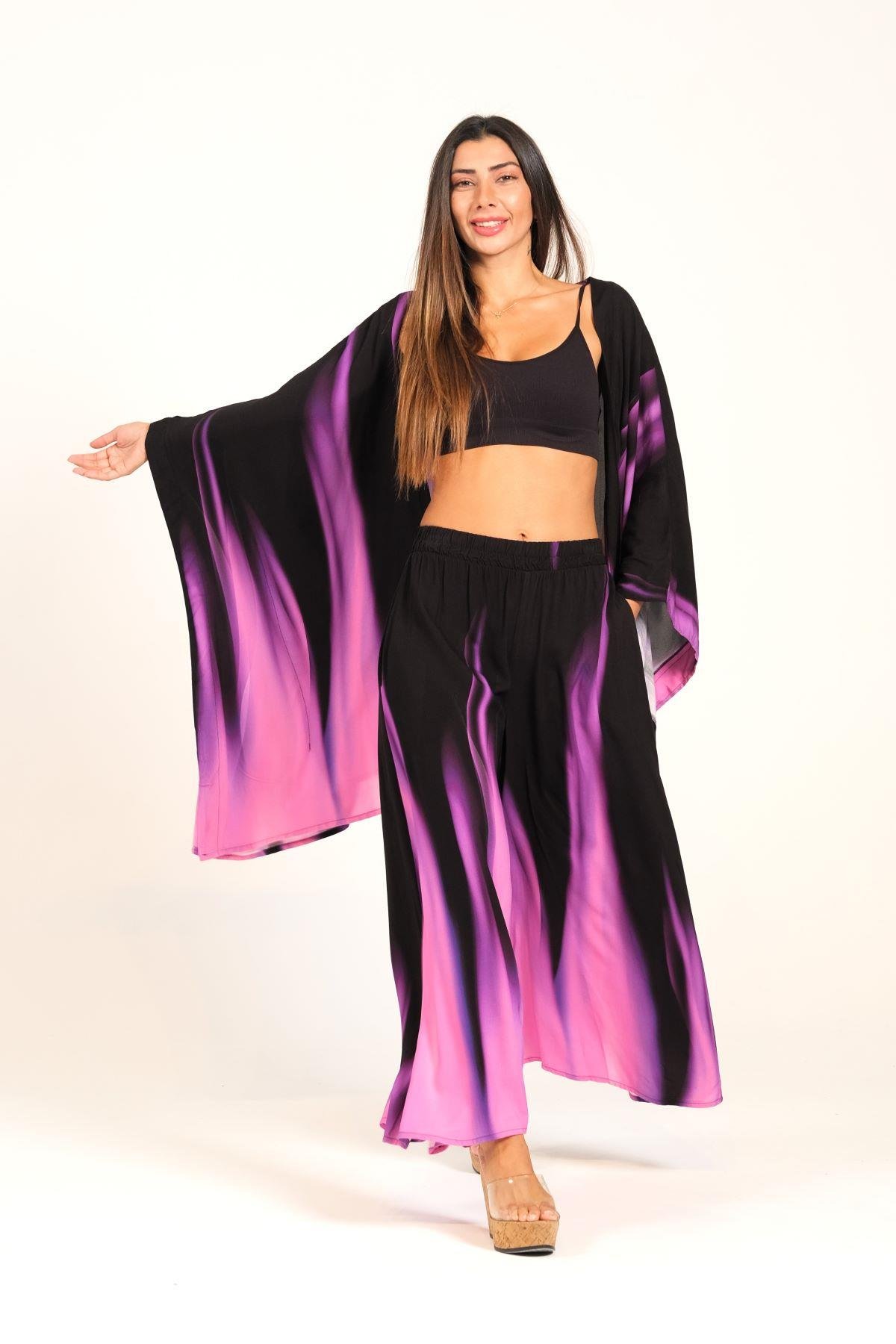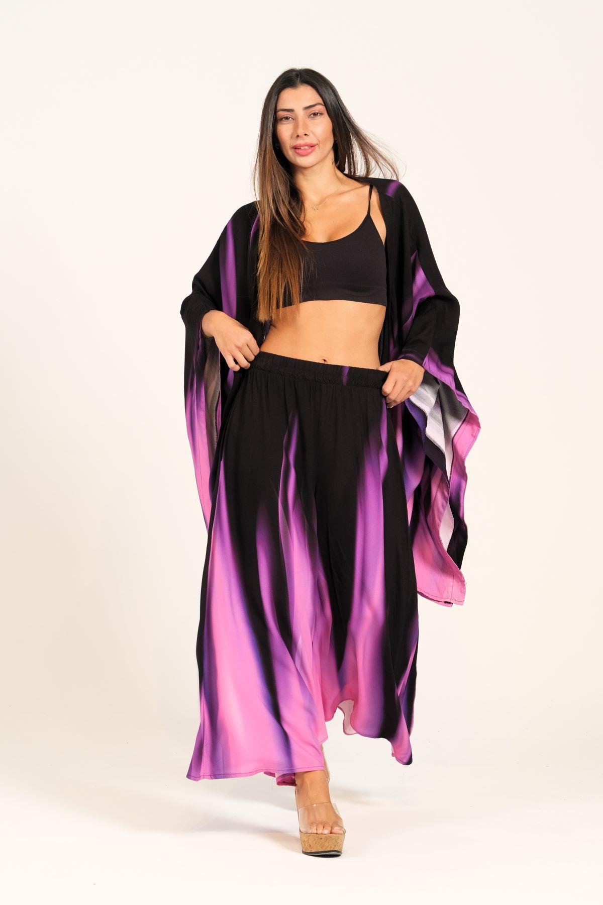 Mor Alev Desenli Tunik Pantolon İkili Takım