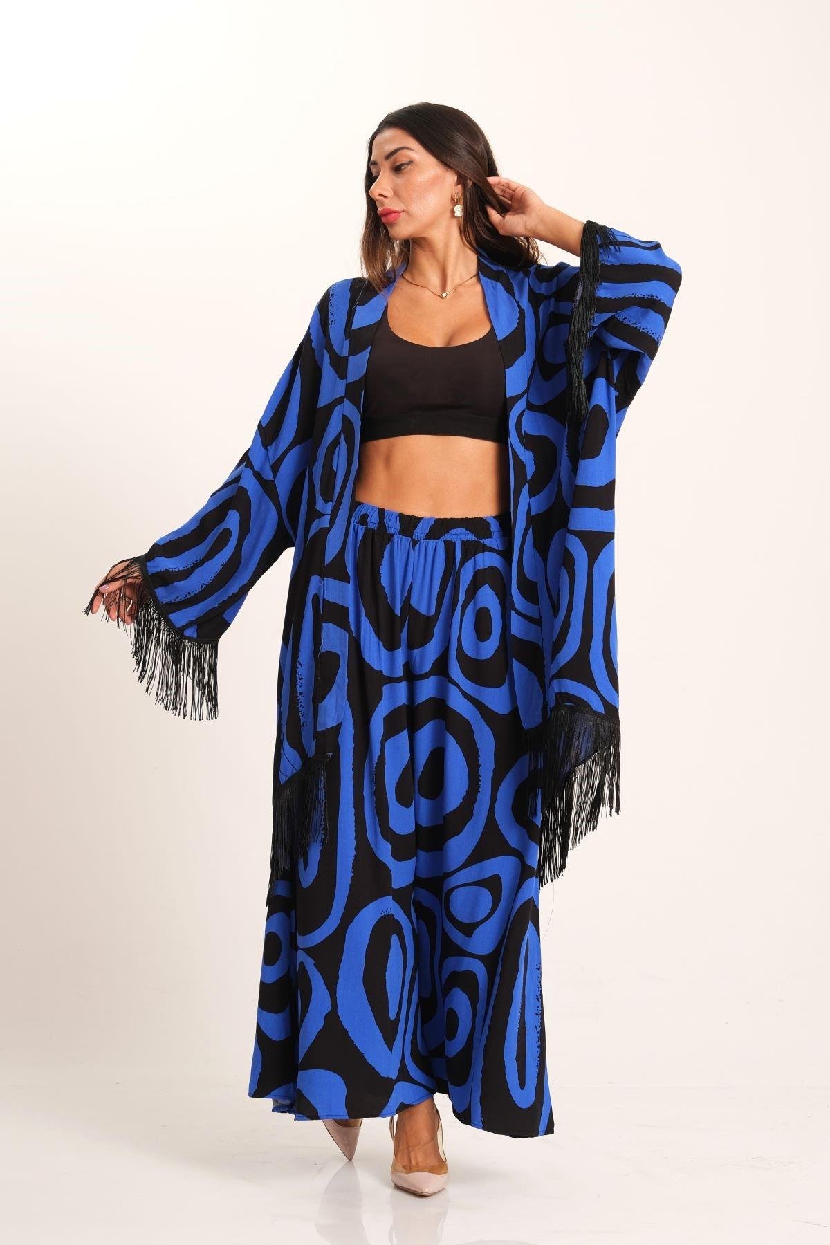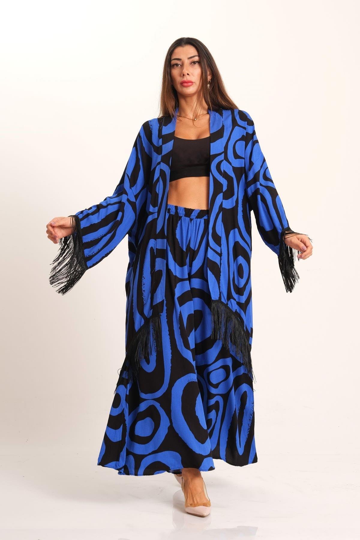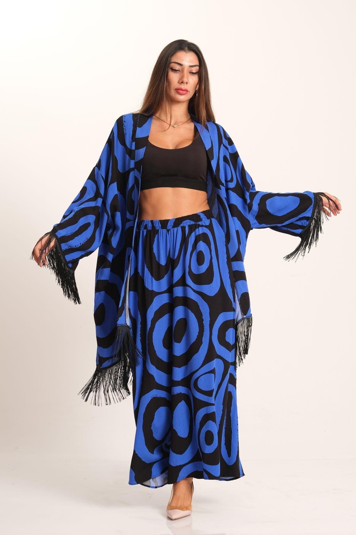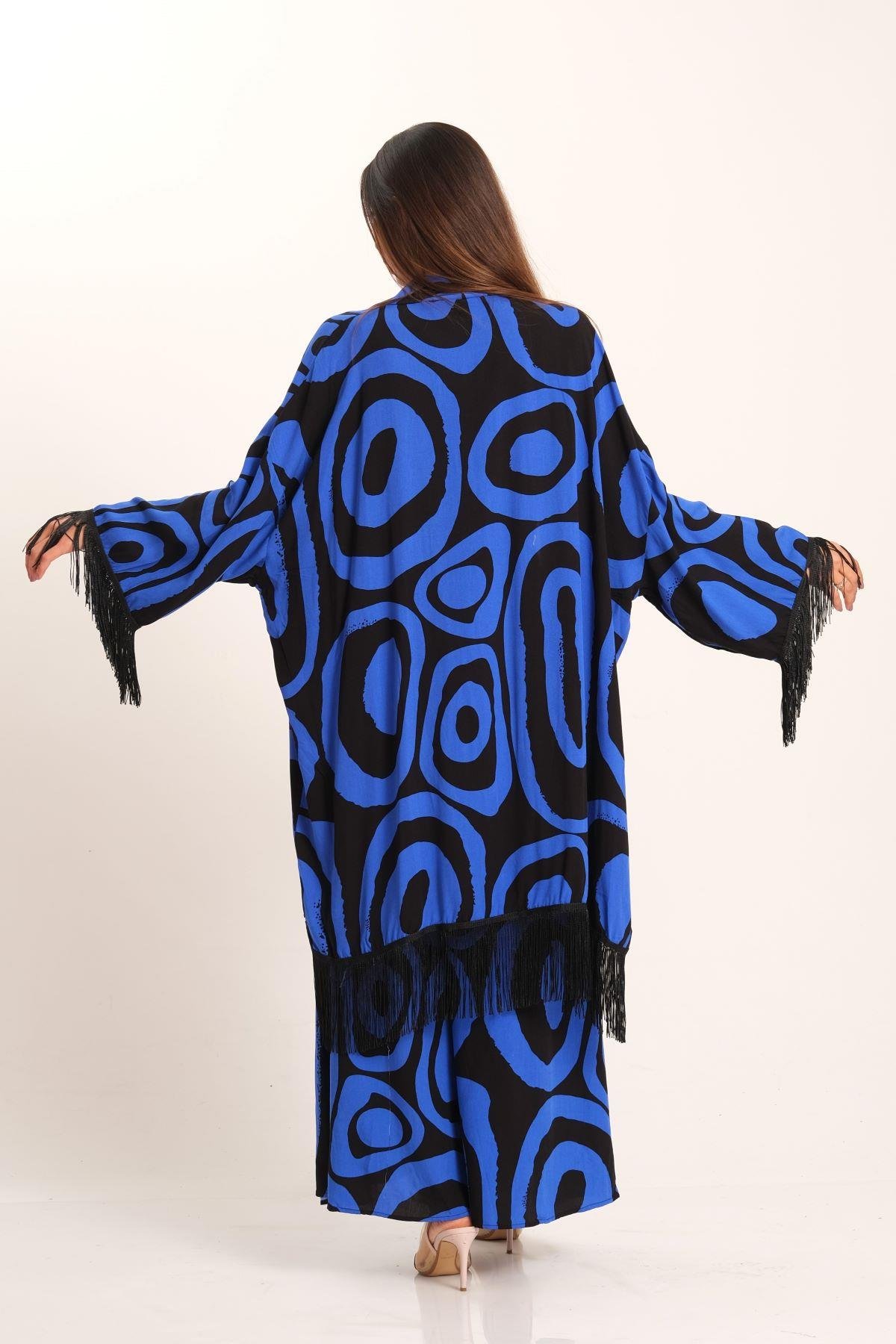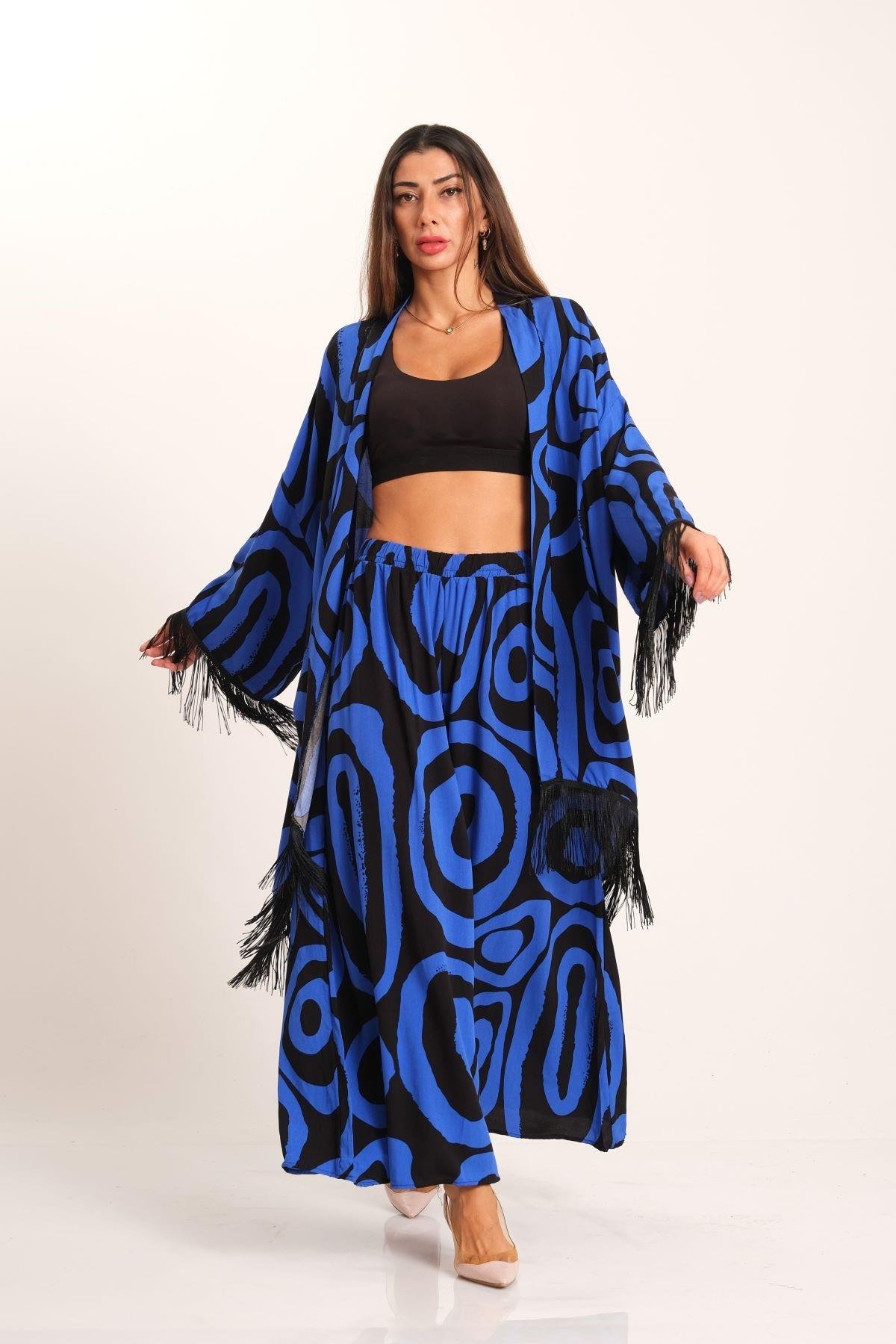 Saks Mavi Desenli Gömleği Püsküllü Gömlek Pantolon Takım (TAKWSCMSS1018)